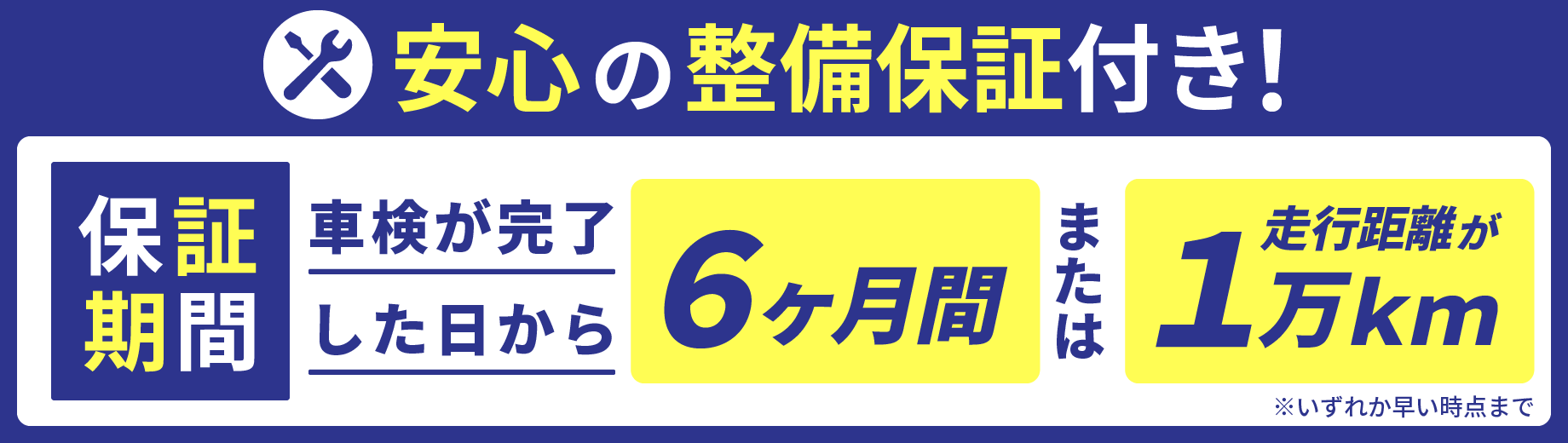 小松・能美・加賀市エリアのお客様が安心してご利用いただけるように、【車検後6か月・または走行距離が1万kmの保証】もお付けしております。
