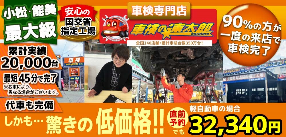 是非「車検の速太郎」小松店・能美店の車検工場へお立ち寄りください!