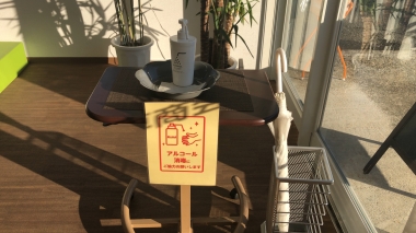 • 入り口と各テーブルに消毒スプレーを設置しております。