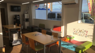 待合室はドリンクや新聞、雑誌に新車販売のカタログ類もありました。14万キロ超えのN-ONE無事車検おわりました。ありがとうございました。(能美店)