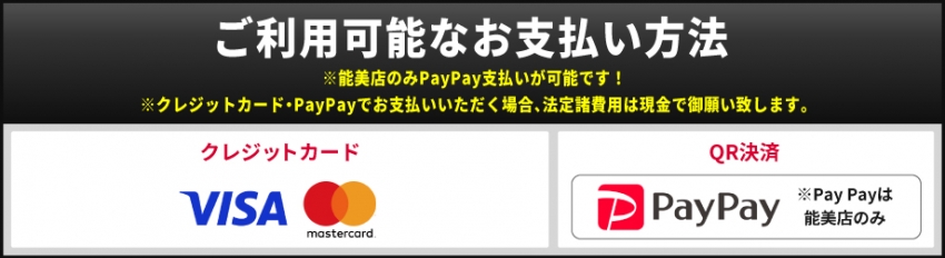 ※クレジットカード・PayPayでお支払いいただく場合、法定諸費用は現金で御願い致します。