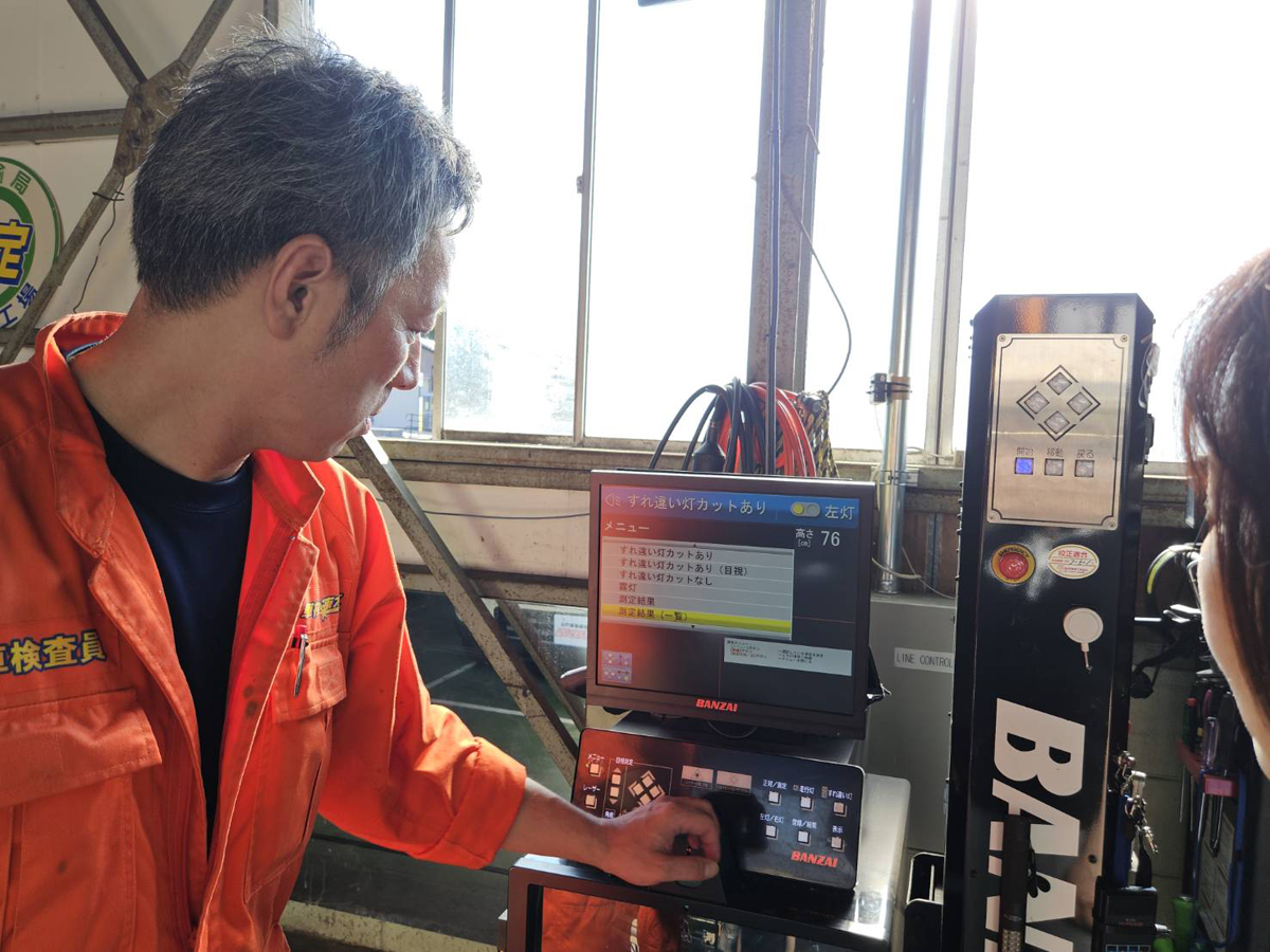ブレーキの効き、スピードメーターの誤差、ヘッドライトの明るさ、向き、排気ガス等が車検基準に合格しているか検査を行い、指定整備記録簿、保安基準適合証を作成いたします。