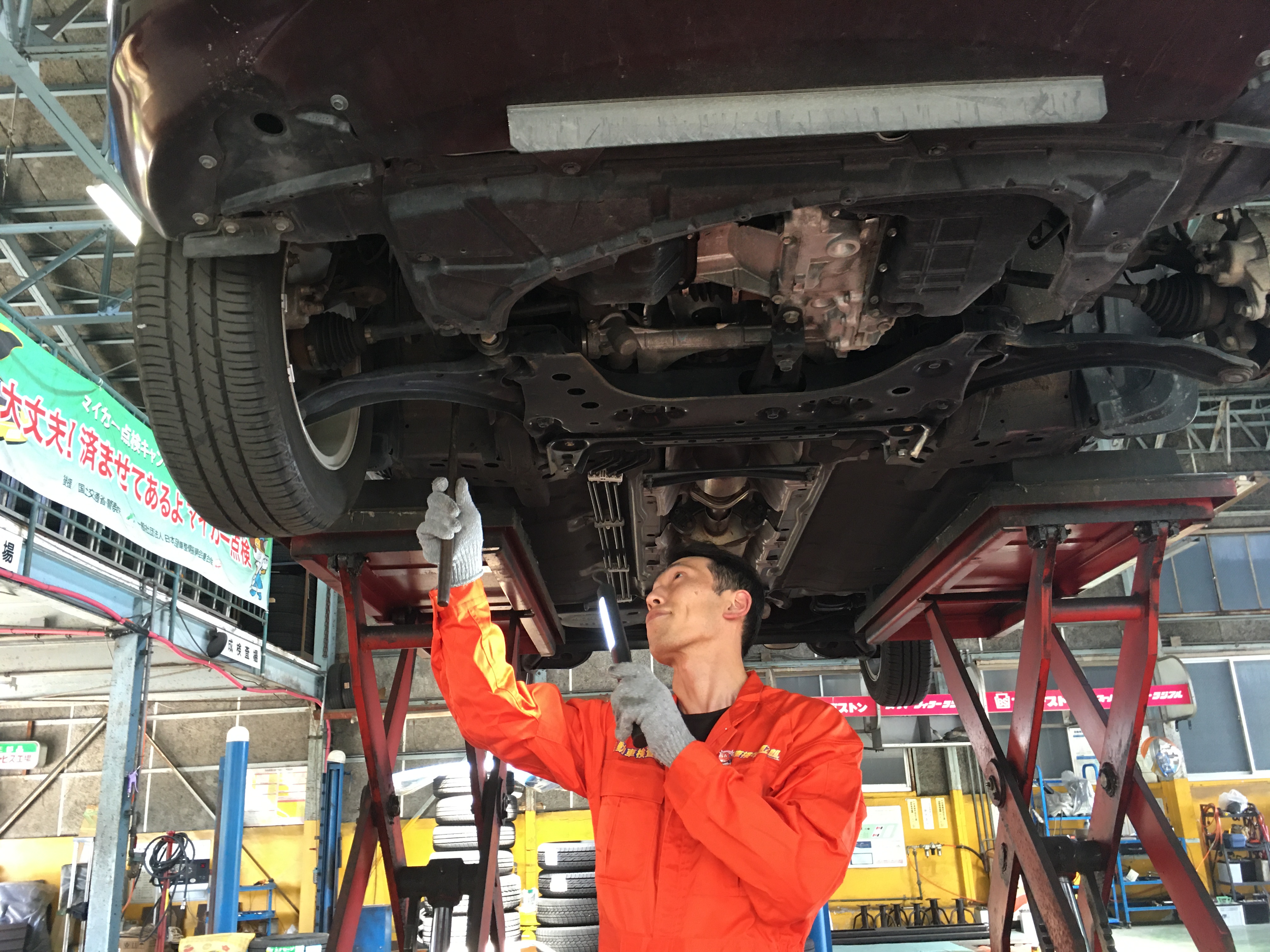 お客様のお車を検査する担当の検査員が実際にお車を見せながらご説明、お客様のご予算に合わせたご提案、走行距離や普段の使い方に合わせたご提案をさせていただきます。整備や交換品がない場合は完成検査へと進みます。