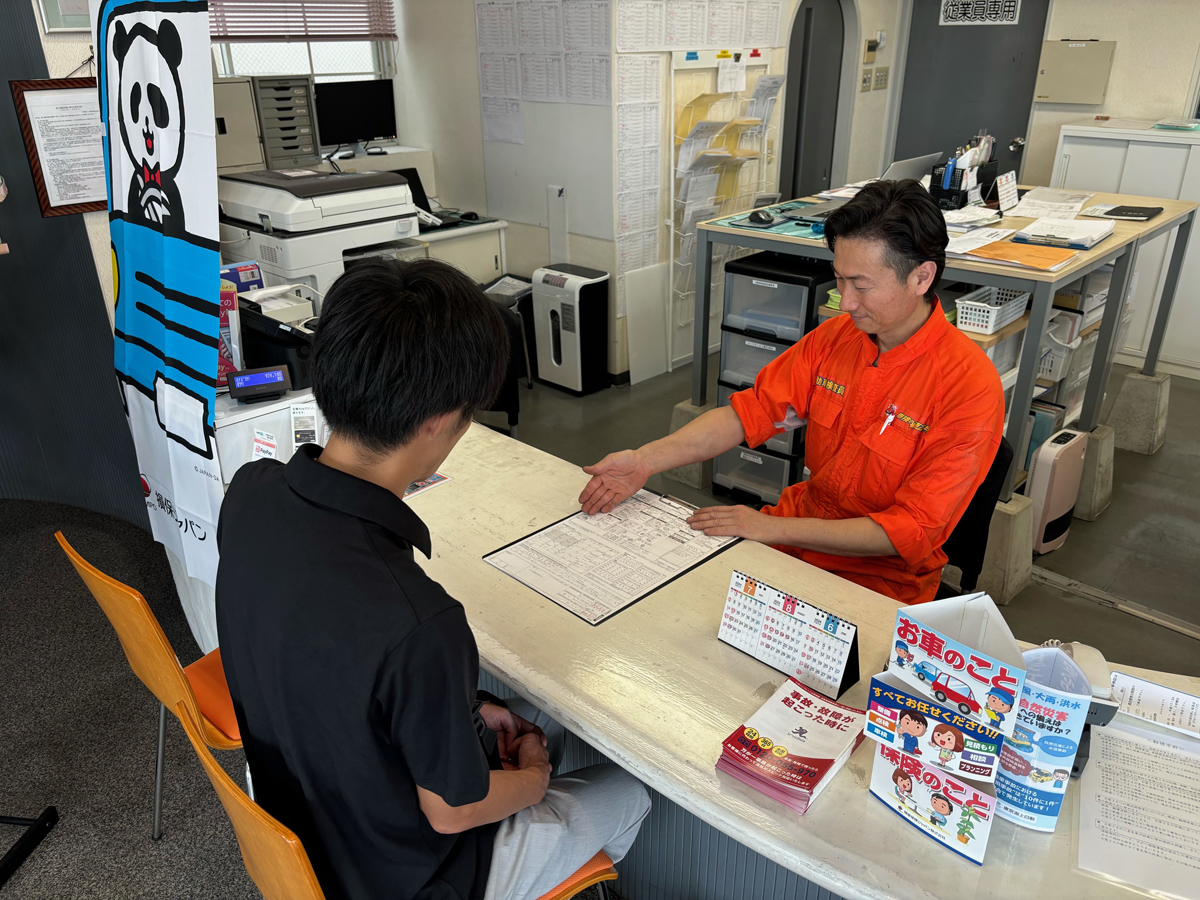 書類の確認とともに車検の流れのご説明、お車の情報より法定費用等のご説明、立合い車検のご説明を行います。
